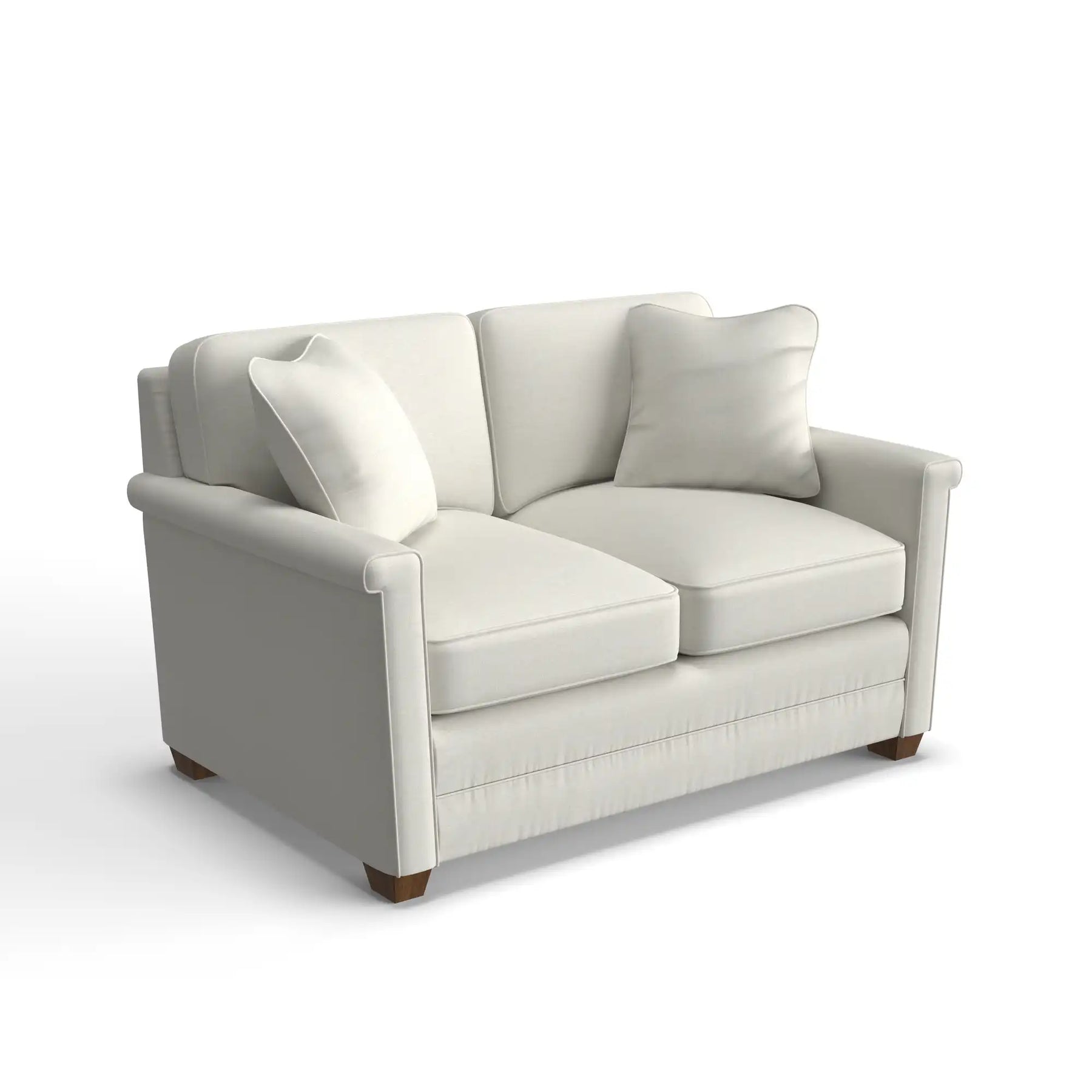 Sometimes less truly is more. That’s the philosophy behind Bexley. Designed to match any décor, this simple loveseat boasts clean lines, casual style and a few unexpected details. Its two box-border seats are framed by slightly flared arms with a unique key-shaped design. Welt trim outlines its modern silhouette while rich wood legs complete the look. Bexley is designed to be customized with mix and match fabrics and available nail head trim. The perfect foundation piece for any decorating style, Bexley also features the quality and comfort of Premier Construction.