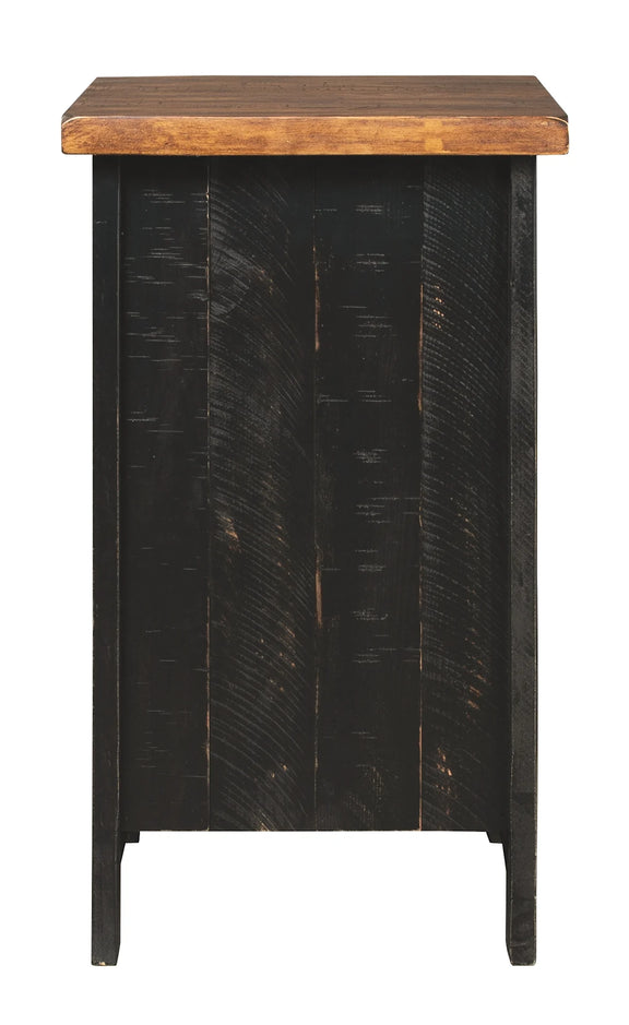 To those with an eye for the best in rustic farmhouse living, the two-tone Valebeck chairside end table doubles up on charm. Designer touches include plank-effect styling, distress marks and a wire mesh door front for added character.
