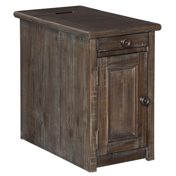 Inspired by heavy and hearty lodge-style furnishings from days gone by, this chairside end table brings the past brilliantly into the present. Distinctive details include robust mouldings and a distressed aged pine color finish with light wire-brushed texture that’s pure artistry. Addition of cleverly placed AC power and UBS plug-ins makes this yesteryear-inspired end table made for the here and now.