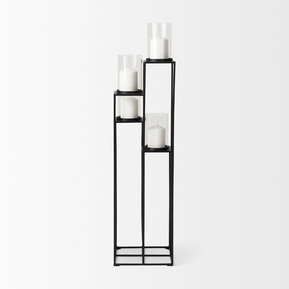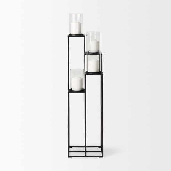 Mercana Cindy 4-Tier, Matte Black Metal w/ Hurricane Glass, Pillar Candle Floor Lantern