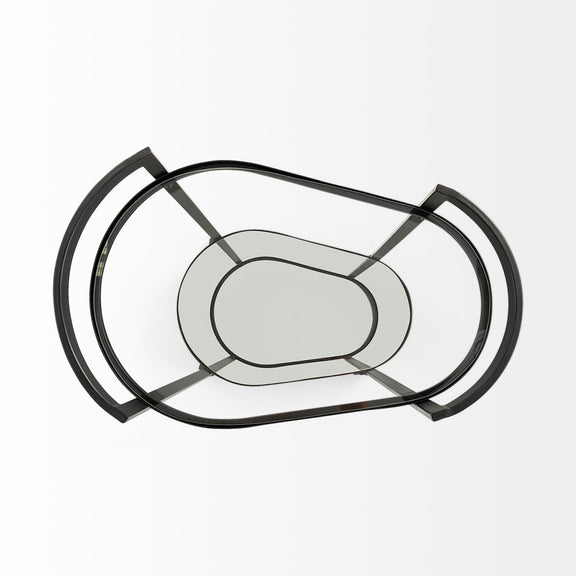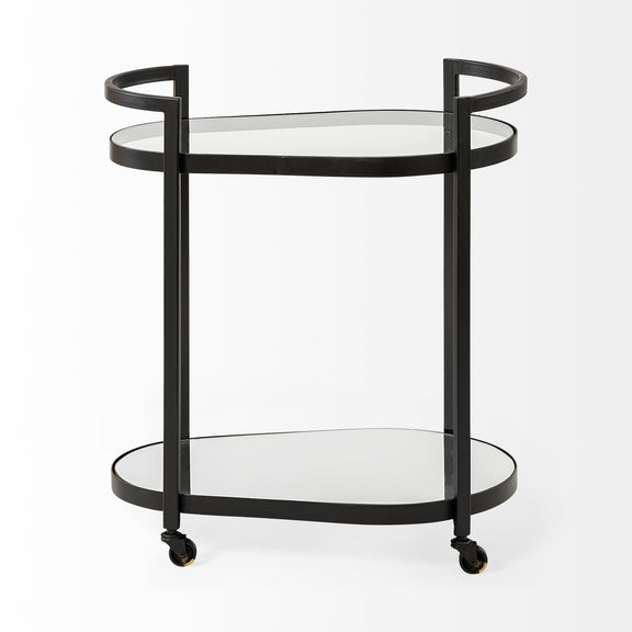 Mercana Eleonore Black Metal Frame Two-Tier w/Glass Shelves Bar Cart