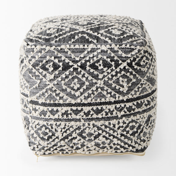 Farida is a dark gray pouf, carefully constructed from a blend of wool and polyester.