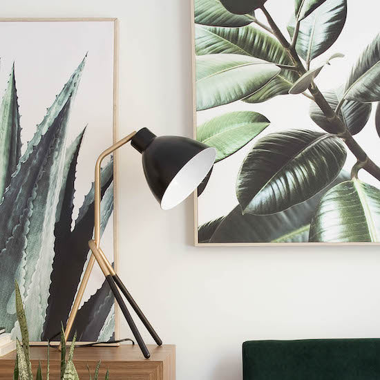 Scaled-down to graceful proportions, our Heron Table Lamp adds intimate mood lighting. The shorter, two-toned tripod base in gold and matte black with black metal shade sits perfectly on side and accent tables where sleek modern design is a must.