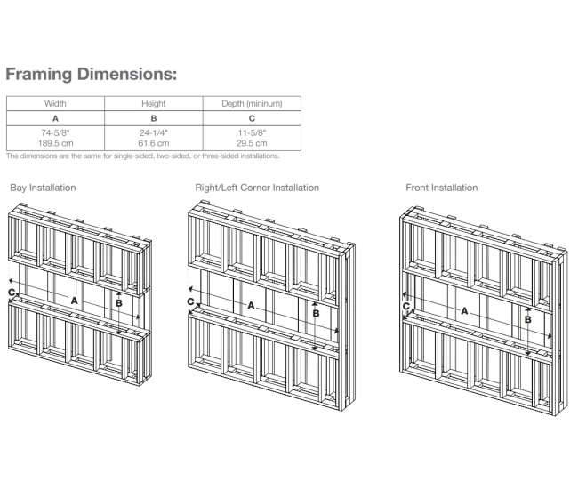 - Choose from four installation styles in one fireplace: front-facing, right-corner, left-corner, or bay-style. The removable side panels make customization effortless.