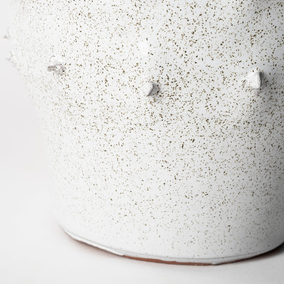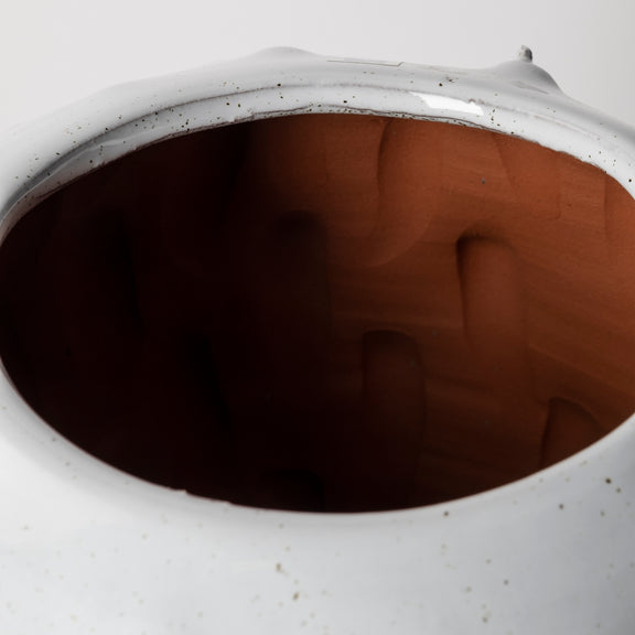 The Julian is finished in a white ceramic glaze with spokes on the exterior, making it a stunning vase that is sure to turn heads.