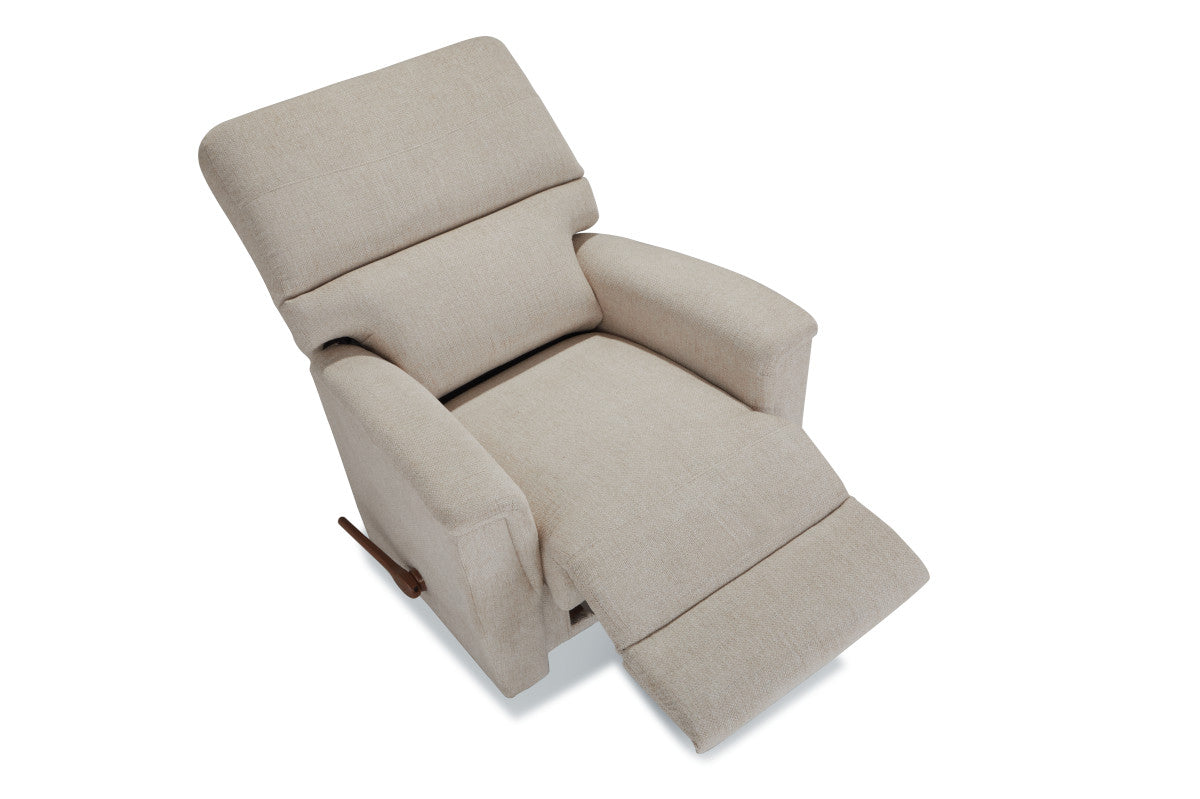 With its sleek form, the Ava Rocking Recliner is a fresh take on a casual classic. Refined padding wraps the armrests. A tall foam back and smoothly tailored chaise seat and legrest lend cozy adjustable support, clean style and rocking relaxation!