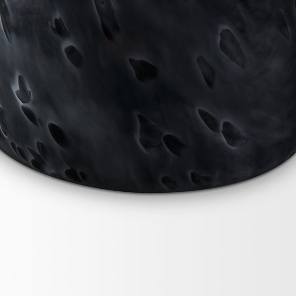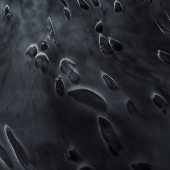 The Masai Glass Vase short is thick, black polished glass with a mottled, milky haze overlay.