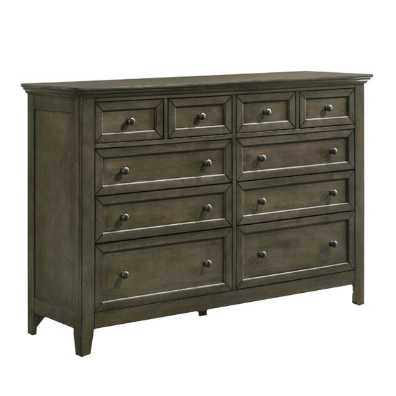 Solid wood bedroom suite available in three classic finish colors – White, and Gray. Storage and standard bed rails in queen and king sizes plus four case piece options give plenty of room for organization. A gorgeous dresser that will last in function and style.