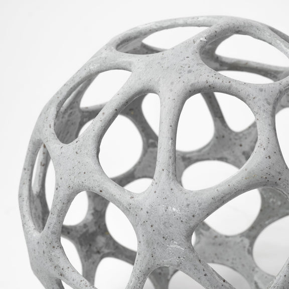 The Spiro, shaped like a orb with hollow cut outs, skillfully crafted from resin, is a beautiful and unique addition to your space.