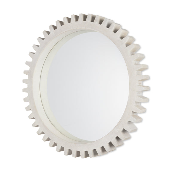Mercana Sundance Cog 35.5" Round Whitewashed Wood Frame Mirror