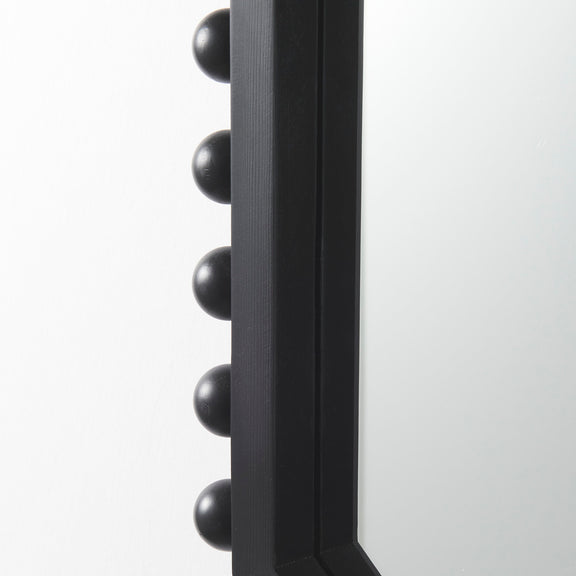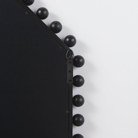 The glass sits within a solid wood frame lined with wooden spheres that give it a beautiful, beaded effect - like jewelry for walls!